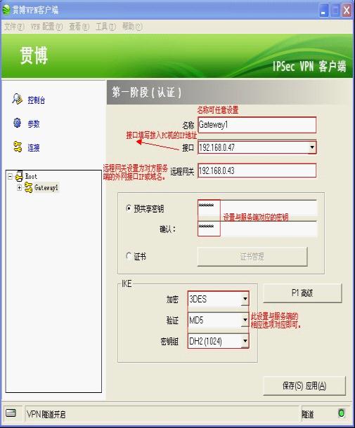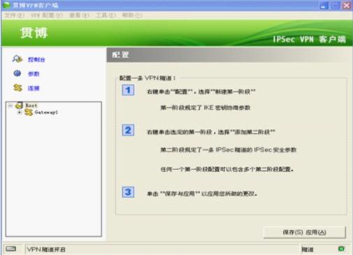 (二)以GreenBow VPN IPsec Client(版本4.00.001)為例,介紹客戶端配置。