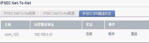 通過以上設置便可成功建立IPSEC點對網的VPN。